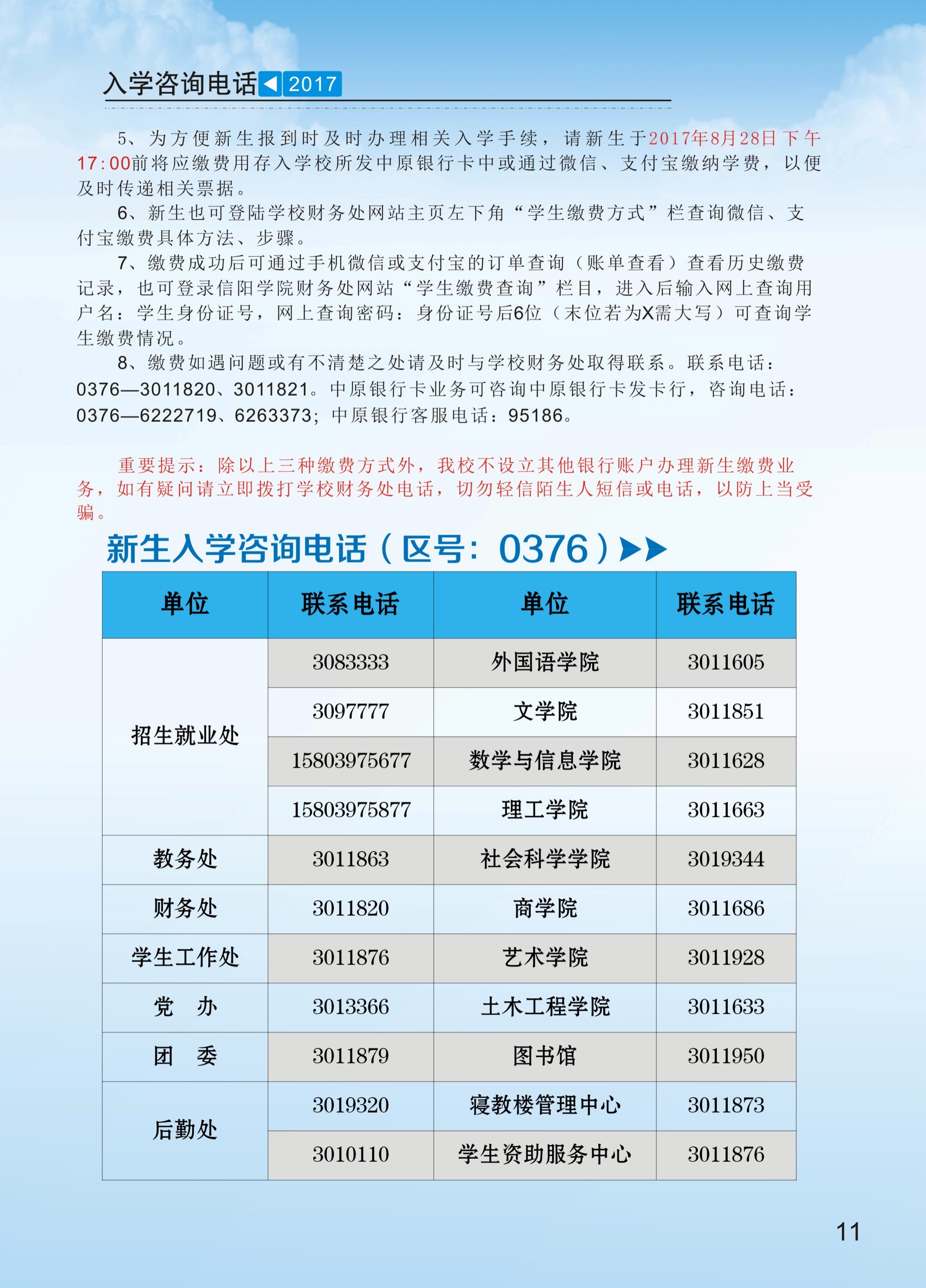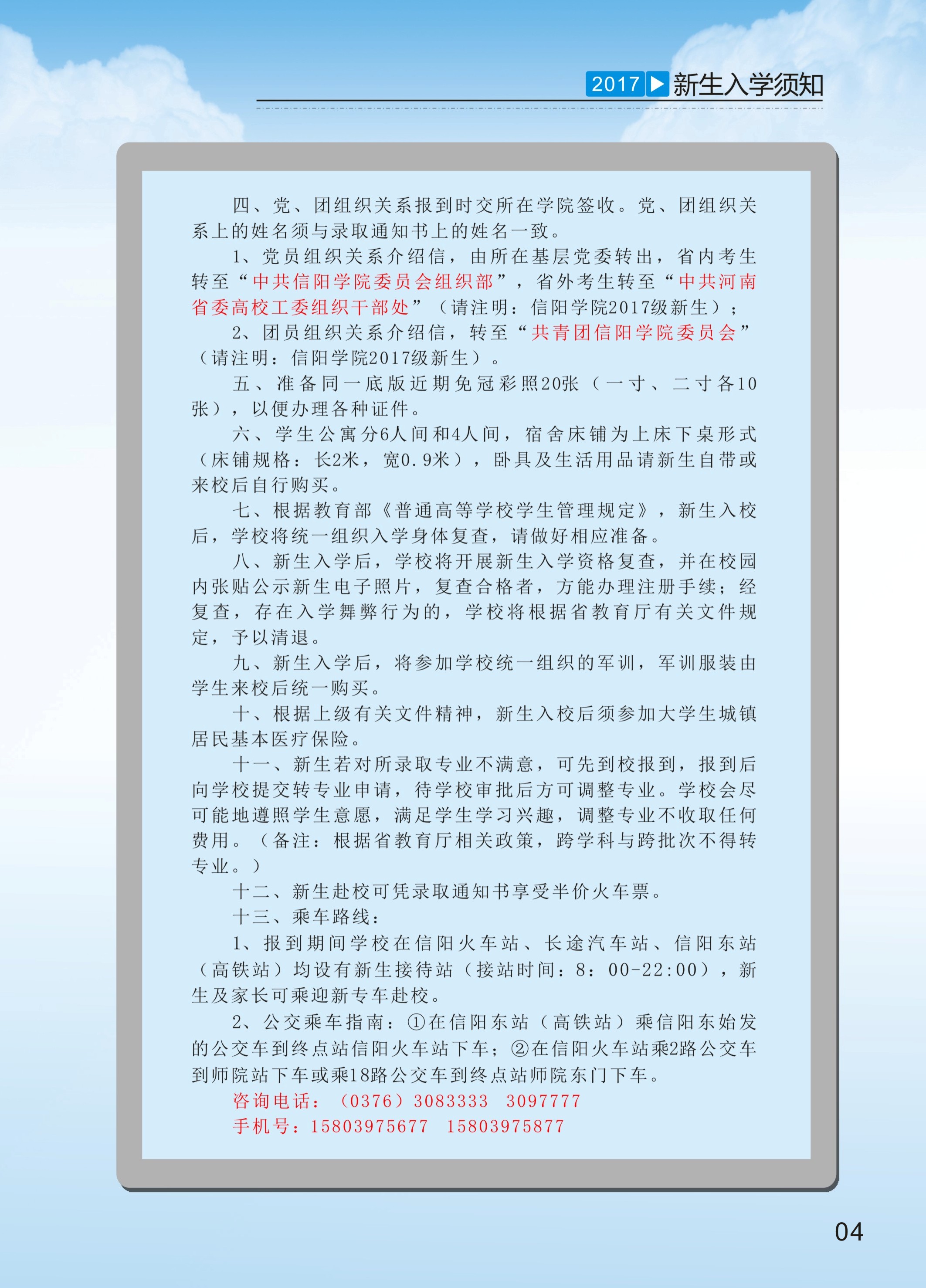 信阳学院2017年新生入学须知
