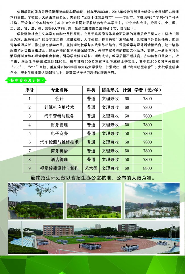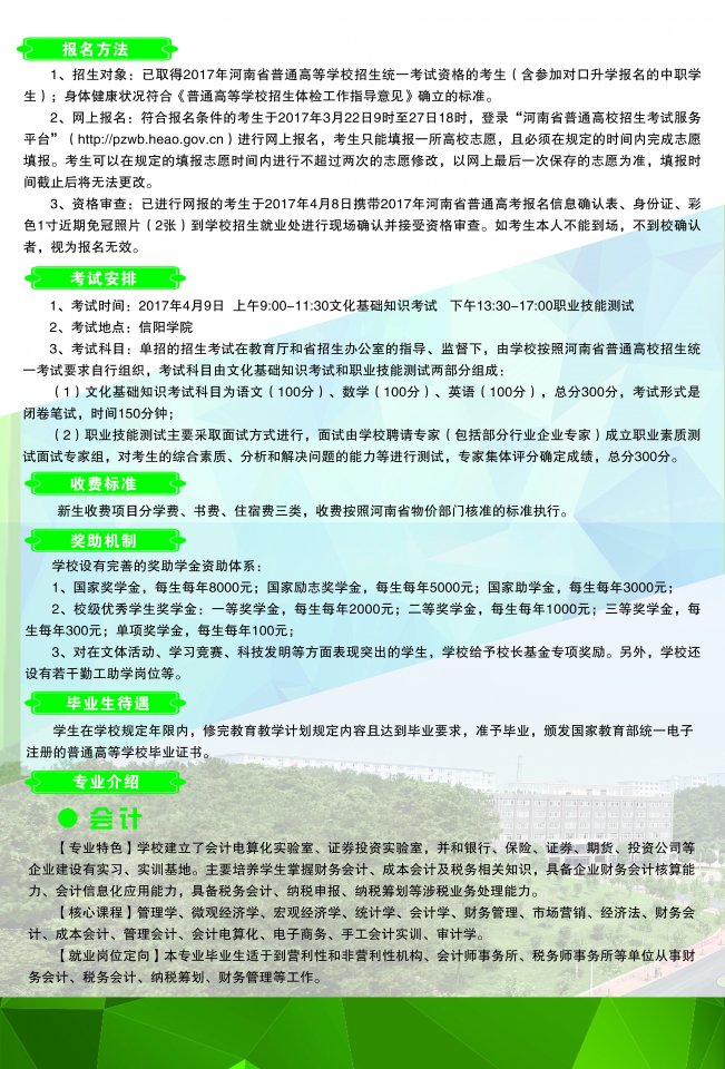 信阳学院2017年单独招生简章