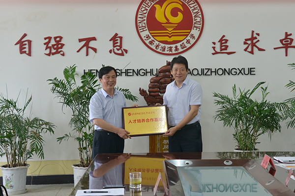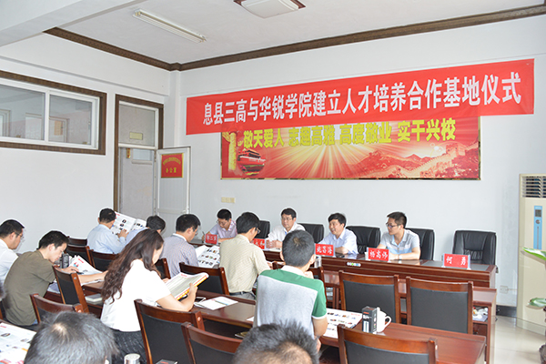 为了有效对接基础教育,增强学院人才培养工作的针对性,进一步推动教育教学改革,提高人才培养质量,近期我院院长施昌海带领院长助理杨高伟、院办负责人张富庄、招就部负责人郭二军等先后奔赴信阳市罗山高级中学、淮滨高级中学和息县三中,参加在上述3所学校举行的人才培养合作基地挂牌仪式。